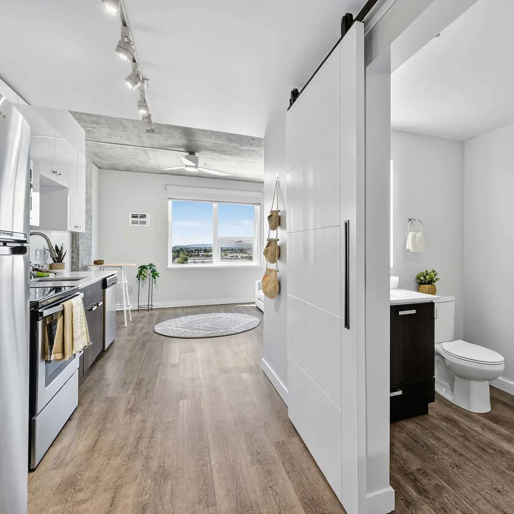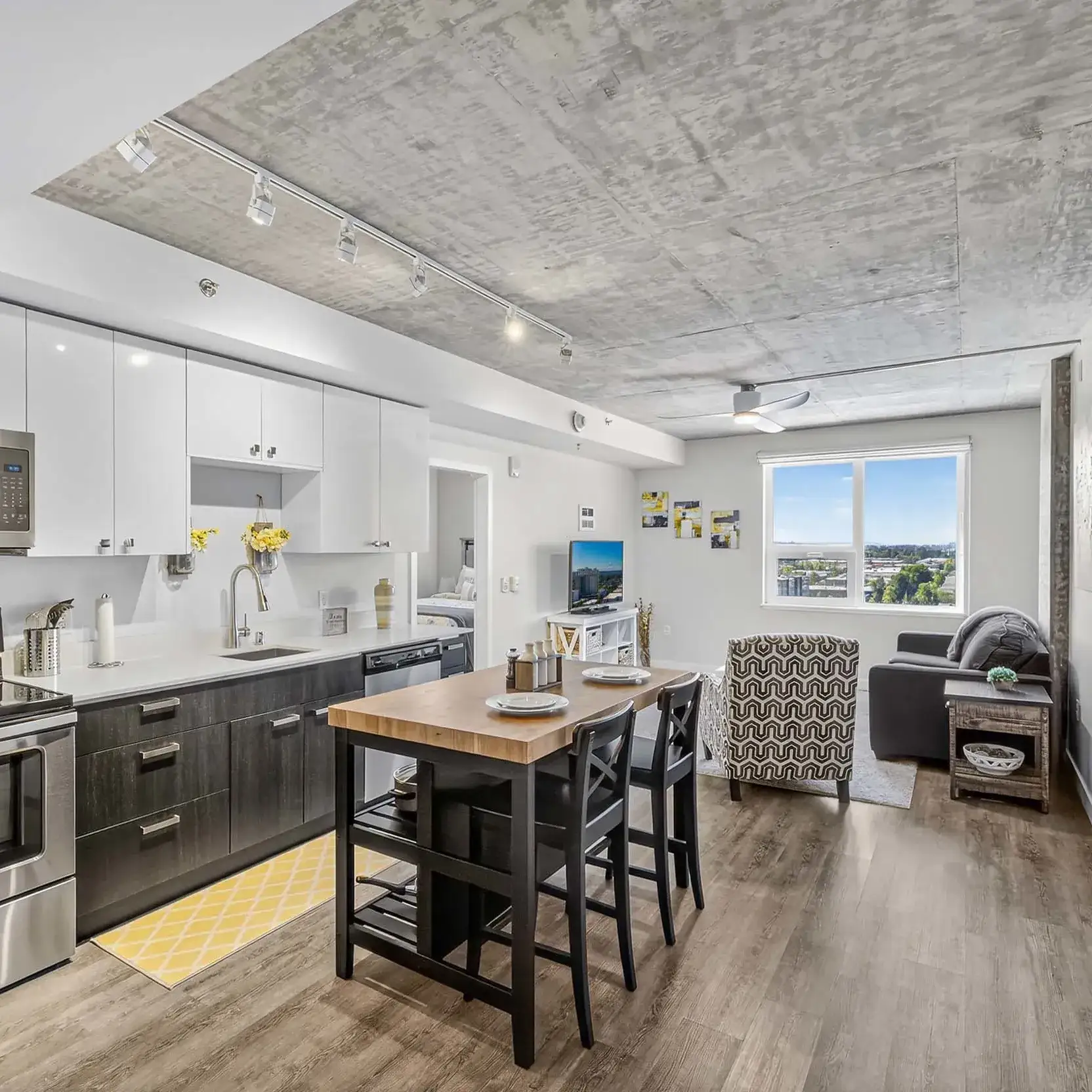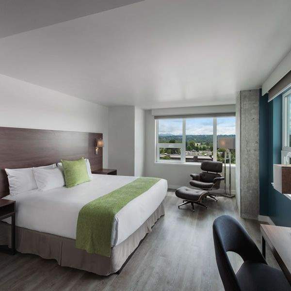 Andover Park, completed in 2014, is a striking mixed-use high-rise tower and is the tallest building in Tukwila. The 19-story building features a seamless integration of luxury hotel accommodations and residential living spaces, complemented by a multi-level parking structure. Hotel Interurban occupies a portion of the building with 189 guest rooms, while Airmark Apartments offers 370 residential units across a variety of floor plans, including studios, 1-bedroom, 2-bedroom, and 3-bedroom layouts.