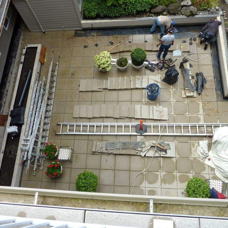 The scope of work involved investigating water infiltration across multiple building systems, including siding, roofing, windows, doors, unit terrace decks, planter boxes, and below-grade systems.