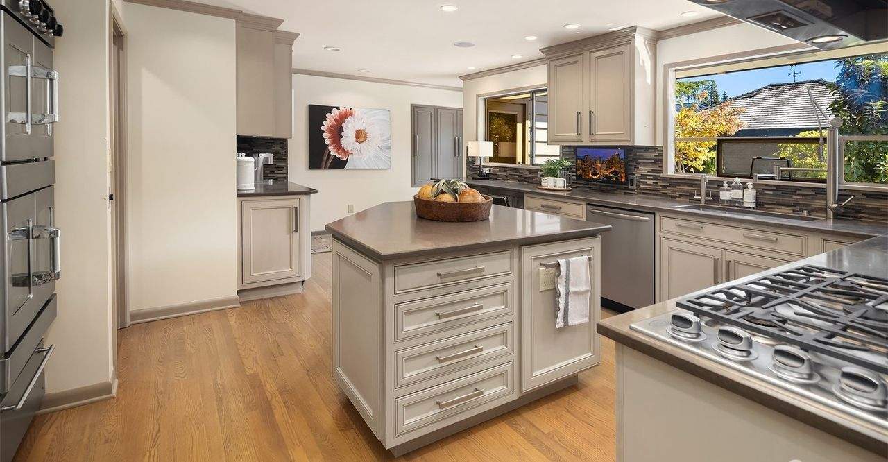 The scope of work included a comprehensive update to the kitchen and bathrooms, the renovation of two exterior patios, a new roof, and a complete overhaul of both interior and exterior finishes. The design updates aimed to blend modern functionality with the home’s classic architectural style, while enhancing the living spaces and outdoor areas.
