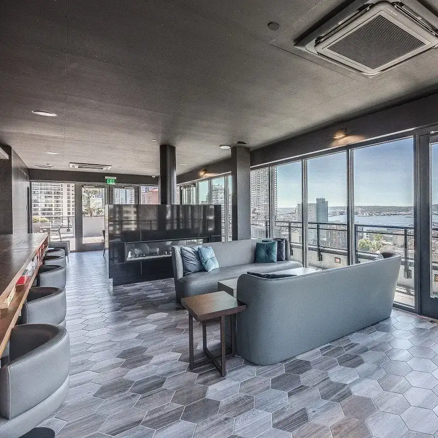 O2 Apartments, completed in 2019, is a modern mixed-use residential mid-rise located in downtown Seattle. The 13-story building features 116 residential units, offering a diverse mix of studio, 1-bedroom, and 1-bedroom + den configurations, designed to cater to a variety of lifestyles. At the street level, approximately 5,300 square feet of retail space provides convenient commercial amenities for residents and the surrounding community. The building also includes three levels of underground parking, maximizing the use of available urban space.